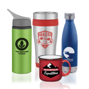 Show off your brand with premium drinkware. Choose from mugs, tumblers, or bottles — laser engraved or screen printed with your logo for stylish, everyday visibility and lasting impressions.